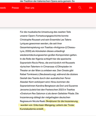 Erstellung von Skulpturen für die Inszenierung der Oper"Ifigenia in Taulide" zu den Festwochen der Alten Musik Innsbruck